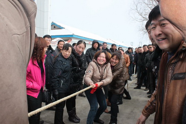 贮木场游艺活动:拔河比赛