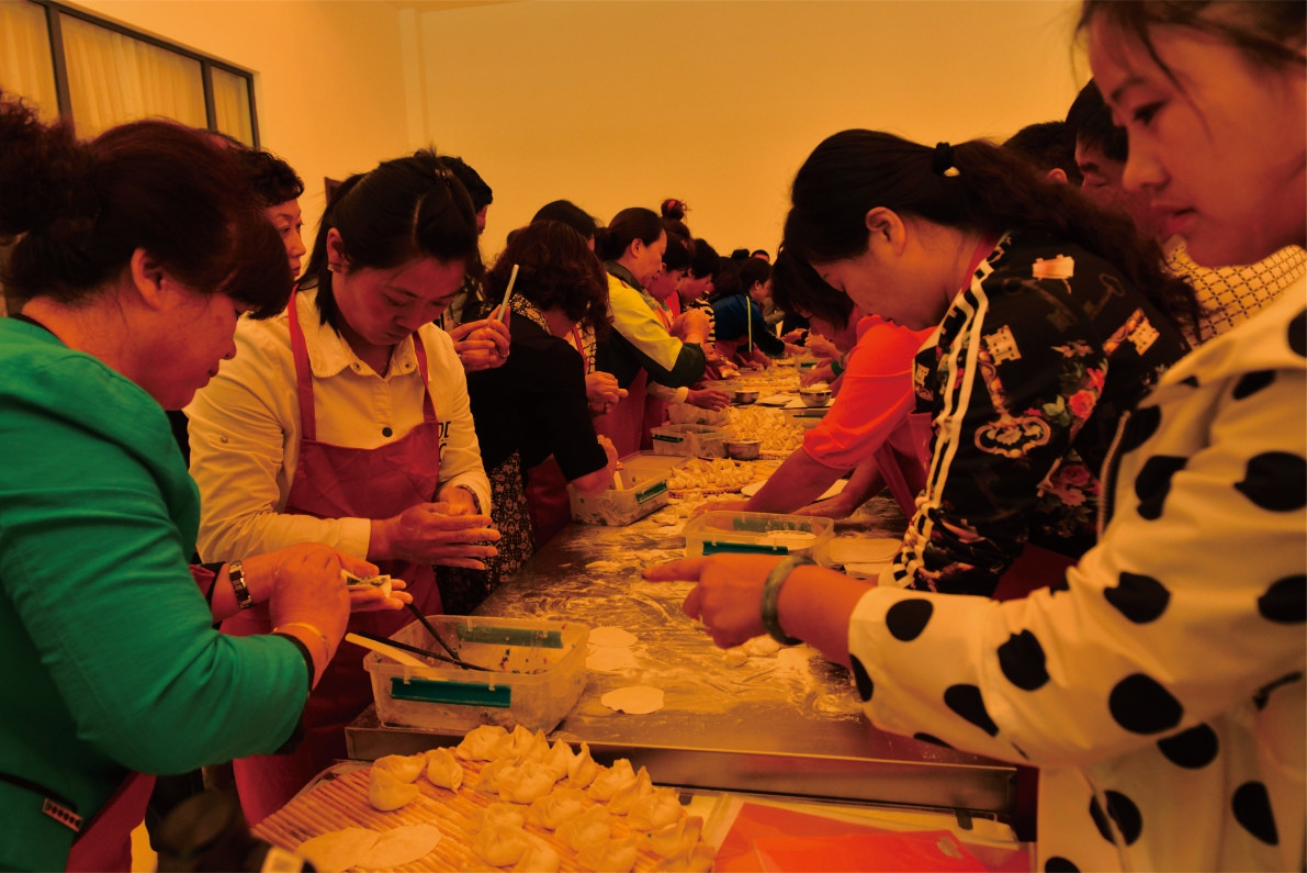 15日晚餐时分,餐厅内一改往日的安静,不时传来阵阵欢声笑语,热闹异常,原来是90余名学员正在参加包饺子比赛。比赛以小组为单位,每组选出三人参赛,以最短时间内完成50个饺子的先后顺序计算名次,且要参考饺子的质量和外观。比赛还在准备阶段,学员们就已按捺不住,个个摩拳擦掌、跃跃欲试,都想一试身手。随着评委的一声令下,整个大厅沸腾了,餐厅立刻变成了“竞技场”。队员们纷纷使出浑身解数,你揉面、他擀皮、我包饺子。专注的表情,娴熟的动作,默契的配合,你争我赶,互不相让。各组的拉拉队员们更是忙得不亦乐乎,有加油助威的,有帮着查数的,有忙着拍照的。再看看包好的饺子,有的长长像弯月,有的小巧精致赛元宝,有的大似包子,有的还没等下锅就已经露了馅儿。整个比赛过程气氛热烈,笑声不断。经过激烈的角逐,7组、9组和3组分获前3名。更有意思的是,接下来的晚餐中,学员们要品尝的正是自己小组的劳动成果——刚刚煮好的饺子。但并不是每个组的学员们都能大快朵颐哦,望着盘中那些大如包子的饺子,这个组的学员们是不是有些眼晕啊?还有一个组,学员们在餐桌前面面相觑,如何吃掉煮成了片儿汤的饺子呢?看着他们为难的表情,求他们此时的心理阴影面积!