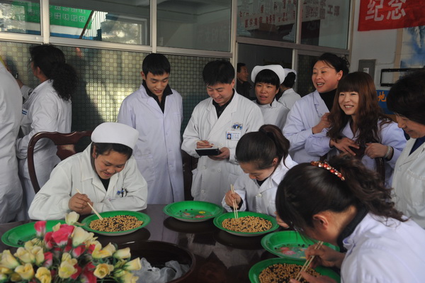 一是3月7日下午1:30分,在医院二楼职工活动室进行了职工趣味游艺活动,活动项目有:跳棋、挑豆子、刨幺、呼啦圈接龙。全院职工(含男职工)除值班人员外一律参加,对在活动中取得名次的团体和个人给予了奖励。对参加活动积极踊跃的个人和值班人员颁发了纪念品。